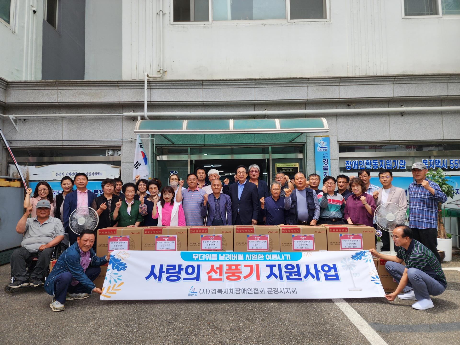 (사)경북지체장애인협회 문경시지회(지회장 박홍진)는 6월 25일(화) 지회 사무실에서 임·직원 30여 명이 참석한 가운데 무더위를 날려버릴 시원한 여름나기 “사랑의 선풍기 배부사업”을 진행하였다.